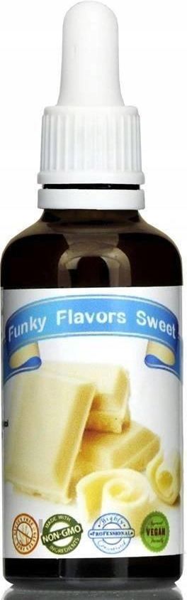 Funky Flavors Aromat White Chocolate Biała Czekolada BEZ CUKRU 50ml Funky Flavors Sweet White Chocolate to słodzony aromat spożywczy bez dodatku cukru! Krople smakowe idealnie sprawdzają się w dietetycznej kuchni – jako dodatek do ciast, owsianek, domowych lodów, koktajli, ciastek, omletów, …