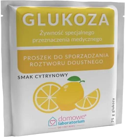 Żywność specjalnego przeznaczenia medycznego o smaku cytrynowym to produkt stworzony z myślą o osobach wymagających szybkiego postępowania dietetycznego. Jego głównym składnikiem jest glukoza, która jest jednym z najważniejszych źródeł energii dla organizmu. Glukoza w proszku do przygotowania roztworu Żywność specjalnego przeznaczenia medycznego o smaku cytrynowym to produkt stworzony z myślą o osobach wymagających szybkiego postępowania dietetycznego. Jego głównym składnikiem jest glukoza, która jest jednym z najważniejszych źródeł energii dla organizmu. Glukoza w postaci proszku jest łatwo przyswajalna. Szybko podnosi poziom cukru we krwi co jest kluczowe w sytuacjach nagłych. Stosowanie glukozy jest szczególnie zalecane dla osób z cukrzycą, które mogą doświadczać nagłych spadków poziomu cukru we krwi. Produkt ten może być używany przez sportowców i osoby prowadzące aktywny tryb życia, które potrzebują szybkiego zastrzyku energii. Produkt należy przyjmować pod nadzorem lekarza. Zastosowanie w stanach nagłych i nie tylko Glukoza o smaku cytrynowym jest idealnym rozwiązaniem w sytuacjach, gdzie konieczne jest szybkie podniesienie poziomu cukru we krwi. Dzięki swojemu smakowi jest łatwa do spożycia. Opakowanie o wadze 76,5g jest poręczne i łatwe do przenoszenia, Można je mieć zawsze pod ręką, zarówno w domu jak i w podróży. Produkt ten jest również wykorzystywany w szpitalach i placówkach medycznych. W warunkach domowych może być stosowany przez osoby starsze oraz tych, którzy mają problemy z przyswajaniem innych źródeł węglowodanów. Doustny test tolerancji glukozy: po wykonaniu oznaczenia glukozy we krwi na czczo zawartość saszetki rozpuścić w szklance wody (200-300 ml) roztwór wypić w ciągu 3-5 minut. Następnie oznaczenie glukozy wykonuje się po 120 minutach. - w stanach wyczerpania, po wysiłku fizycznym: można przyjąć od 5 do 20 gram (łyżeczka do kilku łyżeczek) glukozy. Nie stosować pozajelitowo. Nie stosować w zespole złego wchłaniania glukozy. Składniki: glukoza, regulator kwasowości – kwas cytrynowy, aromat cytrynowy. Alergeny: może zawierać pochodne zbóż zawierających gluten, soi, mleka, jaj. Zalety Glukoza w proszku szybko podnosi poziom cukru we krwi, co jest kluczowe w nagłych przypadkach. Produkt w postaci proszku jest łatwy do spożycia i może być rozpuszczony w wodzie. Małe poręczne opakowanie sprawia, że glukoza jest łatwa do przenoszenia i zawsze dostępna w razie potrzeby. Ten produkt posiada oznaczenie CE o numerze jednostki notyfikowanej Ten produkt posiada deklarację zgodności UE - spełnia wymogi Unii Europejskiej. To jest wyrób medyczny. Używaj go zgodnie z instrukcją używania lub etykietą. Do produktu jest dołączona etykieta i/lub instrukcja obsługi w języku polskim.
