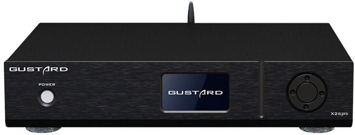 Ulepszona wersja Gustard DAC-X26, X26 Pro oferuje szereg usprawnień, które mają uczynić go zarówno potężniejszym jak i bardziej wszechstronnym. Obejmują one teraz odbiornik Bluetooth 5.0, ulepszone taktowanie, dekodowanie plików MQA oraz ulepszone odprowadzanie ciepła. Bezkompromisowa konstrukcja X26Pro wykorzystuje wysokiej klasy komponenty audio, aby zapewnić bogaty, dokładny i dynamiczny dźwięk jak najbliższy oryginalnemu sygnałowi. ES9038Pro Dual DAC Sercem X26Pro są dwa układy DAC ESS ES9038Pro do konwersji cyfrowo-analogowej. Każdy kanał ma więc swój własny chip konwersji i zasilanie, aby zapewnić najlepszą możliwą wydajność audio. Dodatkowo chipy te obsługują wysokie częstotliwości próbkowania, które w przypadku Gustarda X26Pro mogą sięgać 32bit 768kHz PCM oraz DSD512 na wejściach USB i I2S. Układom tym towarzyszy LPF klasy A integrujący wyłącznie elementy dyskretne, zoptymalizowany specjalnie dla przetworników DAC ES9038Pro. Syntezator zegara o ultra niskim poziomie szumu X26Pro zawiera syntezator zegara K2, który dostarcza drugi sygnał zegarowy i synchronizuje dekodowanie. Dzięki temu wydajność DAC-a może być niezależna od sprzętu źródłowego. Układ CPLD Altera MAX II Funkcje logiczne X26Pro zostały powierzone układowi CPLD, w tym system zarządzania zegarem, drugie przetwarzanie cyfrowe PLL, dekodowanie DoP i wiele innych funkcji, które w znacznym stopniu przyczyniają się do wydajności urządzenia. Filtry i SHARC DSP Gustard X26Pro oferuje kilka filtrów cyfrowych, PCM i DSD, aby dostosować reprodukcję dźwięku do odsłuchu i systemu audio, jednocześnie redukując szumy resztkowe. Aby zaoferować wysokiej jakości filtry, Gustard zdecydował się na opracowanie własnych filtrów z wykorzystaniem układu DSP Analog Device SHARC. Rozwiązanie to integruje algorytm antyaliasingu zaprojektowany przez Gustarda, wykorzystujący wysoce precyzyjny 64-bitowy układ zmiennoprzecinkowy. Co więcej, algorytm ten został zoptymalizowany do idealnej współpracy z przetwornikami DAC ESS i zapewnienia najlepszej możliwej jakości dźwięku. Interfejs USB XMOS Za wejściem USB-B w X26Pro kryje się wydajny interfejs USB XMOS XU216. Interfejs ten umożliwia szybkie i wydajne przetwarzanie danych, obsługując jednocześnie strumienie danych o wysokiej rozdzielczości. Zasilanie Zasilanie X26Pro wykorzystuje dwa transformatory toroidalne i dyskretny 8-kanałowy hybrydowy obwód konwersji I/V. Dzięki temu cały system otrzymuje spójne, niezwykle czyste i stabilne zasilanie, co jest niezbędne do uzyskania wysokiej jakości reprodukcji dźwięku. Ponadto każdy kanał obwodów analogowych X26Pro korzysta z niezależnej szyny zasilającej w celu ograniczenia zakłóceń i szumów. Bluetooth 5.0 Nowością w tej wersji Pro Gustard DAC-X26 jest integracja układu odbiornika Bluetooth 5.0 Qualcomm CSR8675. Układ ten pozwala na zdalną transmisję muzyki w wysokiej jakości, dzięki obsłudze takich protokołów jak aptX HD i LDAC. Łączność Gustard X26Pro korzysta z pełnego zestawu złączy zdolnych do dostosowania się do wielu systemów audio. Wejścia obejmują USB-B, I2S LVDS over HDMI, Coaxial, AES, Optical i odbiór Bluetooth. Po stronie wyjść X26Pro oferuje zbalansowane XLR i niezbalansowane stereo RCA. Należy zwrócić uwagę, że analogowe obwody urządzenia wykorzystują architekturę zbalansowaną bez konwersji z całkowitą separacją obu wyjść. Dane techniczne Zakres częstotliwości: 20- 20kHz /±0.1dB DNR: >128dB Crosstalk: -140dB@1kHz THD+N: ≤0. 0001%@1kHz IMD: <0. 0006% @-1dBFs RCA 0utput level: 2. 5Vrms Impedancja wyjściowa: 100 Ohmów XLR Output level: 5Vrms Impedancja wyjściowa: 100 Ohmów Pozostałe dane Wymagania sieciowe: AC 115V/230V 50/60Hz Pobór mocy: <60 W Wymiary: Szerokość 330 mm x Wysokość 65 mm x Głębokość 260 mm Waga: 7 kg brutto