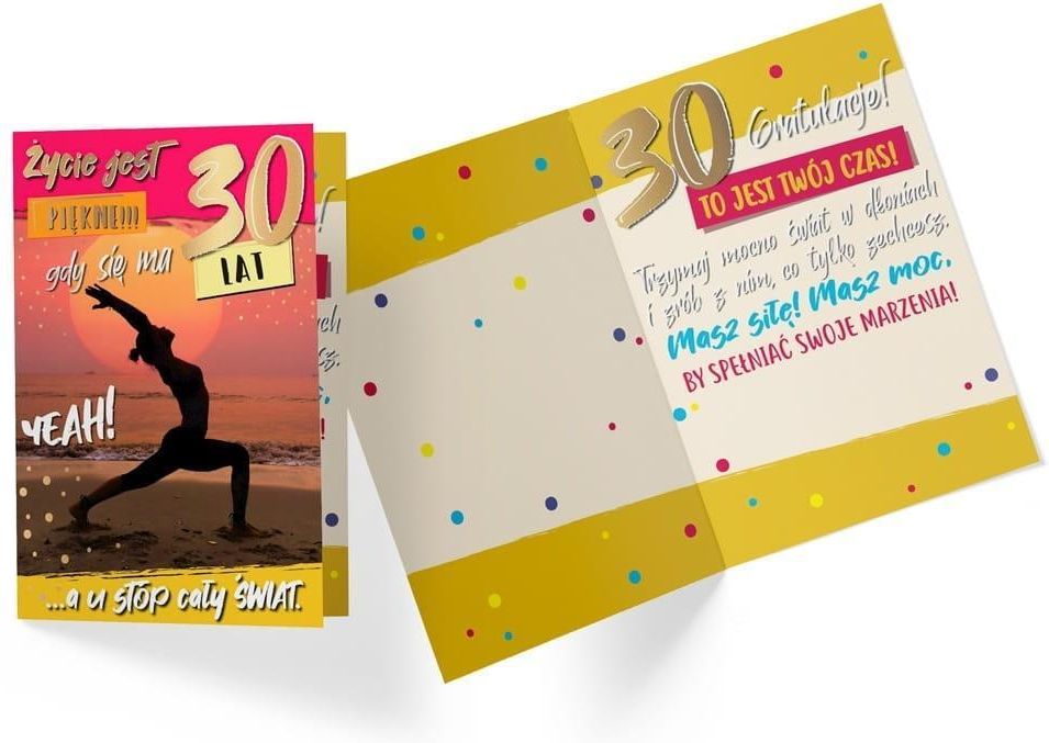 Opis produktu: Karnet urodzinowy B6, model PP-2190 Prezentowany karnet urodzinowy o numerze modelu PP-2190 to oryginalny i pięknie wykonany produkt. Jest on oznaczony numerem 30, co czyni go idealnym dla osób obchodzących trzydzieste urodziny. Karnet cechuje się formatem B6, co oznacza, że jego wymiary po złożeniu wynoszą 11,7 x 16,6 cm. Jest ozdobiony na różne sposoby - w zależności od wybranego wzoru, może być zdobiony metaliczną folią lub brokatem.Unikalnym elementem tego karnetu jest kolorowe życzenia umieszczone w jego wnętrzu. Przygotowane zostały z myślą o imieninobiorcy, dlatego są pełne serdeczności i ciepłych słów. Dodatkowo, karnet posiada dołączoną kopertę - dzięki temu, nie musisz martwić się o jej zakup, wszystko jest już w zestawie.To wyjątkowy produkt, który sprawi, że osoba obchodząca urodziny poczuje się doceniona i wyjątkowa. EAN: 5901924474388