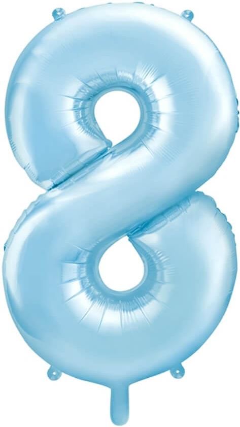 Organizujesz przyjęcie z okazji urodzin?Nie zapomnij o dekoracji pomieszczenia nawiązującej do tematu imprezy. Balon foliowy w kształcie cyfry 8 w niebieskim, pastelowym kolorze stworzy doskonały wystrój imprezowej sali. Niebieska cyfra to także doskonały pomył na prezent.Połączony z innymi balonami, utworzy piękny bukiet urodzinowy. Balon jest nienapompowany. Przeznaczony do napełnienia powietrzem bądź helem. Wymiary: 34" (86 cm)