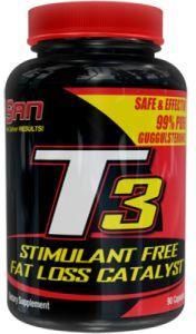 SAN - T3 - 90kaps. Dzięki sportowcy będą mogli naturalnie podnieść poziom hormonów tarczycy jednocześnie nie blokując ich produkcji. Dzieje się tak dlatego, że SAN T3 stymuluje podniesienie poziomu produkowanych przez tarczycę hormonów. To właśnie jest sekret doskonałej definicji - znaczne przyspieszenie przemiany materii poprzez podniesienie poziomu hormonu T3. Ponadto suplement powoduje konwersję niezwiązanych hormonów. Oznacza to, że hormon T4 będzie przyłączał się do receptorów komórkowych w celu konwersji do T3. Dzięki temu suplementowi walka z tkanką tłuszczową została wyniesiona na zupełnie nowy poziom! Działanie wspomagającej odchudzanie odżywki T3 firmy SAN : Wspomaga produkcję hormonów tarczycy. Przyspiesza przemianę materii. Poprawia syntezę białek. Nasila proces lipolizy. Obniża poziom cholesterolu. Wpływa pozytywnie na cerę. Zawiera 99% ekstrakt z guggulsteronów E i Z. Dawkowanie tabletek na odchudzanie San T3: Przyjmuj jedną kapsułkę trzy do czterech razy dziennie z posiłkami. Nie przekraczać ilości 5 kapsułek na dobę. T3 można łączyć z innymi suplementami spalającymi tkankę tłuszczową w celu uzyskania lepszych efektów wynikających z synergistycznego działania.