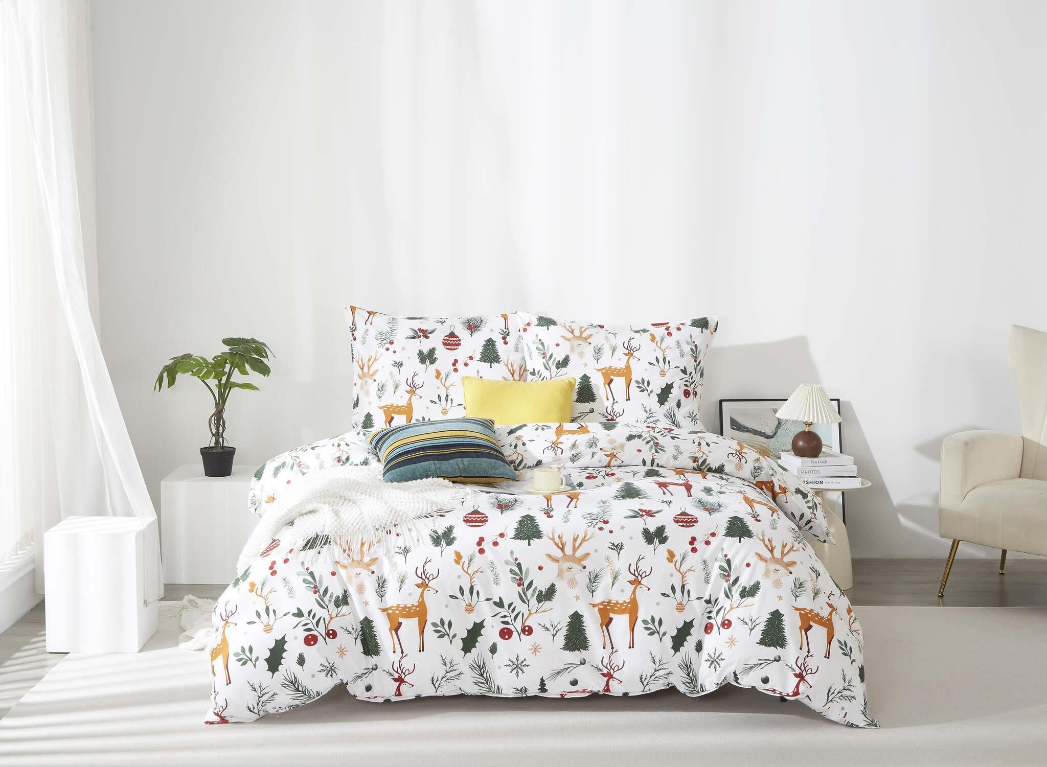 Spod Igły I Nitki Pościel Świąteczna Christmas Forest 220X200 Biała Wilokolorowa Las Zwierzęta Choinki Bombki Pabianice