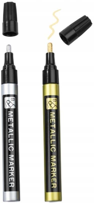 MARKER UNIWERSALNY METALICZNY PISAK UNITED OFFICE ZŁOTY I SREBRNY Wygodny, trwały, praktyczny marker do dekorowania i wypisywania kartek. Końcówka dość precyzyjna, pozwala na tworzenie ładnych napisów. Cechy pisze na praktycznie każdym materiale w tym na drewnie plastiku szkle grubość linii: 2-4 mm Zawartość 2 markery w zestawie
