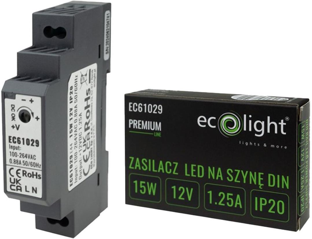 Opinie Ecolight Zasilacz LED 15W 12V DC 1,25A na szynę DIN Premium (EC61029) Pacanów