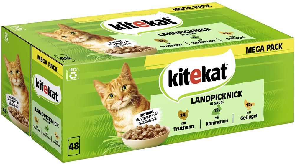 Bycie kotem sprawia, że jest się głodnym. Dzięki karmie Kitekat dajesz swojemu kotu dokładnie to, czego potrzebuje do codziennych przygód: pyszny posiłek wykonany z wysokiej jakości składników oraz wszelkiego rodzaju składników odżywczych i witamin. Dzięki temu możesz pomóc swojemu kotu żyć pełnią życia. Karma Kitekat w saszetkach jest teraz dostępna w wygodnym, zajmującym niewiele miejsca opakowaniu zbiorczym - to 48 świeżych saszetek za jednym razem! Kitekat saszetki w sosie, 48 x 85 g w skrócie: Pełnoporcjowa karma dla dorosłych kotów. Witaminy pomagają wspierać układ odpornościowy. Z cennymi składnikami odżywczymi. Bez konserwantów i aromatów. Wyprodukowany w Niemczech. Opracowana we współpracy z weterynarzami i dietetykami. W tym pakiecie mieszanym dostępne są najbardziej lubiane saszetki Kitekat. Kolorowa różnorodność w sosie 24 x kurczak 12 x wołowina 12 x łosoś Piknik w sosie 24 x indyk 12 x królik 12 x drób Karma dla kota Kitekat wyprodukowana została bez środków konserwujących, sztucznych barwników oraz aromatów. Dobra niemiecka jakość!