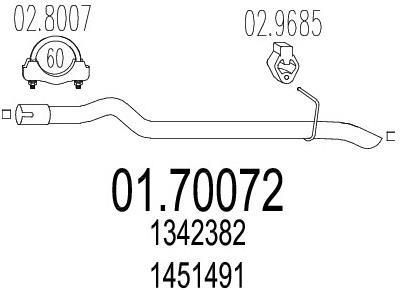 Rura wydechowa MTS 01.70072 (01.70072) (ERNST: 331470FORD: 1451491BOSAL: 840-175FORD: 4458046WALKER: 10358FORD: 1342382TIMAX: FE951KIMASAF: 378308)