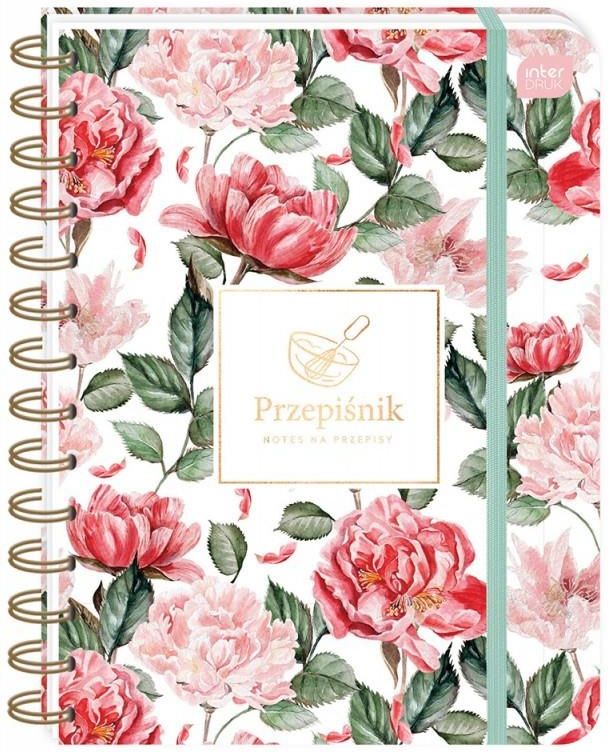 Przepiśnik A5 240k 90g Flowers Black Kwiaty / Interdruk Przepiśnik na podwójnej spirali w formacie A5. W twardej oprawie ze złotym zdobieniem. W środku strona tytułowa z miejscem na dane właściciela, naklejki, strony na własne przepisy, strony z gotowymi przepisami, kuchenny miniporadnik (w tym …