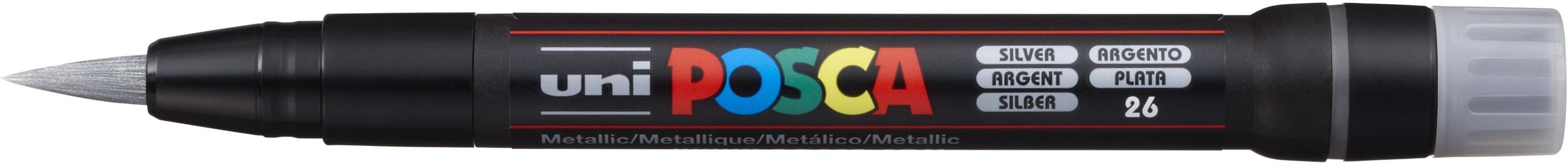 Marker z farbą plakatową Uni POSCA PCF-350 srebrny X23081 * marker z unikalną końcówką z pędzelkiem do pisania i malowania po każdej powierzchni * pigmentowy tusz na bazie wody * nie przesiąka przez papier * zapewnia spójną teksturę od początku do końca * wystarczy energicznie potrząsnąć markerem …