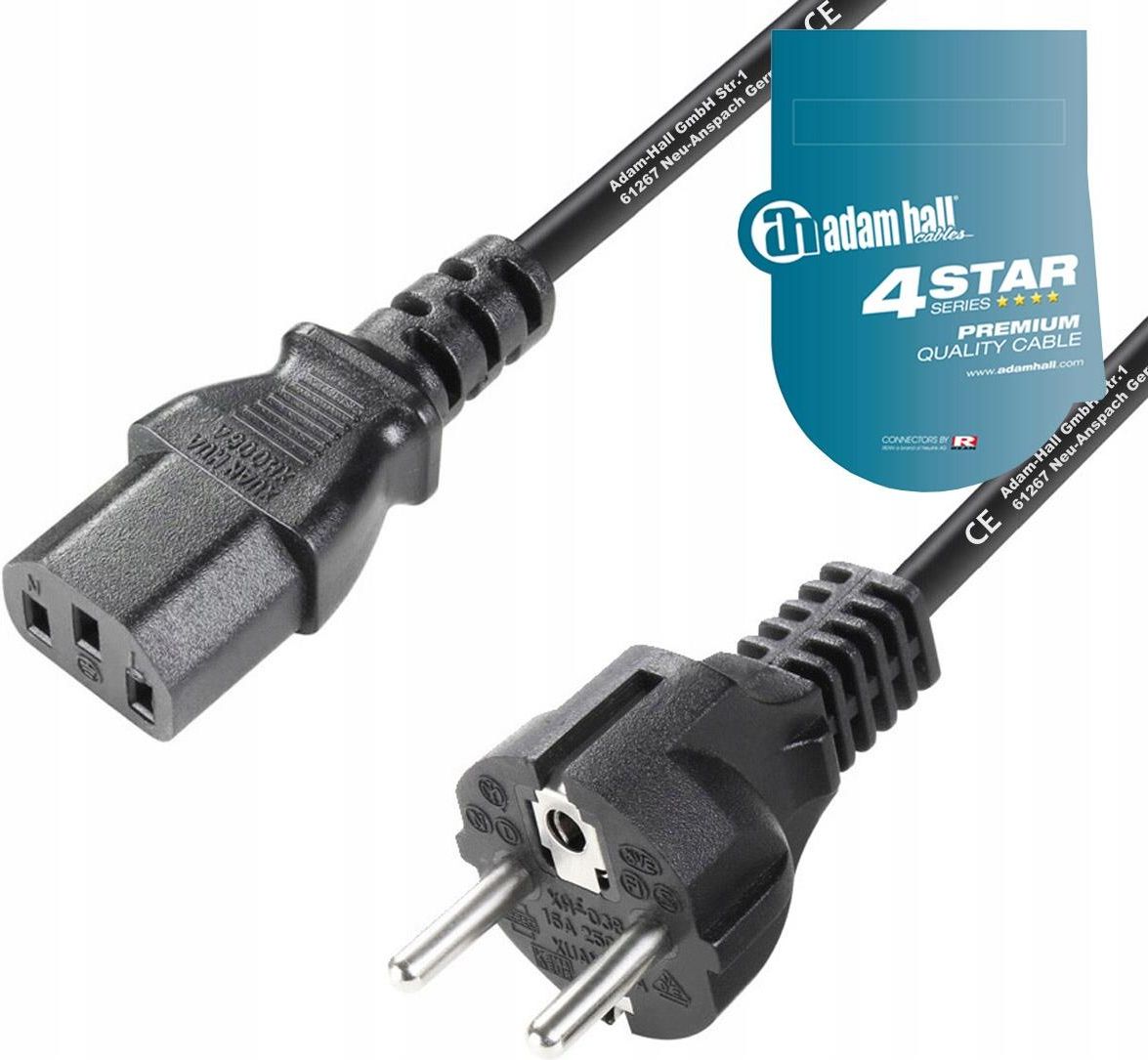 Adam Hall Kabel zasilający wysokiej jakości 3x1.5mm2 IEC C13 x CEE 7/7 Schuko Model: K4PKD0050 Długość: 0,5m Produkt wysokiej klasy renomowanej Niemieckiej firmy nagłośnieniowej od oficjalnego dilera w Polsce. Adam Hall Kabel zasilający wysokiej jakości 3x1.5mm2 IEC C13 x CEE 7/7 Schuko Niezawodne zasilanie dla różnych urządzeń elektrycznych o wysokich wymaganiach w sektorze komercyjnym i prywatnym. Ten kabel został zaprojektowany specjalnie do tego celu i dostarcza energię nie tylko do sprzętu technologii eventowej, ale także do monitorów telewizyjnych, komputerów, projektorów i wymagającego sprzętu HI-FI, który nie powinien generować znaczącego ciepła podczas pracy. A jakość przesyłu powinna być najlepszej jakości. Posiada dobre ekranowanie. Dzięki przekrojowi przewodu wewnętrznego 3x1,5 mm² o różnych długościach możesz szybko znaleźć odpowiedni kabel zasilający i zasilić swój sprzęt niezbędną mocą. Specyfikacja Materiał przewodnika: OFC (Miedź beztlenowa) Przekrój przewodu: 3 x 1,5 mm² AWG 16 Powłoka kabla PVC (Polichlorek winylu) Średnica zewnętrzna kabla 8 mm Typ złącza wtyczka 1 IEC C13 plug female Typ złącza wtyczka 2 Schuko plug male Kolor kabla: Czarny