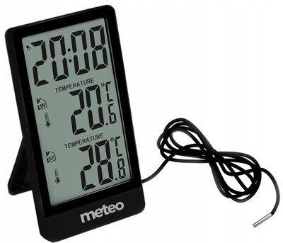Stacja pogody METEO SP111C to praktyczne urządzenie umożliwiające precyzyjny pomiar temperatury wewnętrznej i zewnętrznej dzięki sondzie na kablu o długości 140 cm. Czytelny wyświetlacz, funkcja zegara i budzika oraz kompaktowa budowa sprawiają, że idealnie sprawdzi się w każdym domu.
