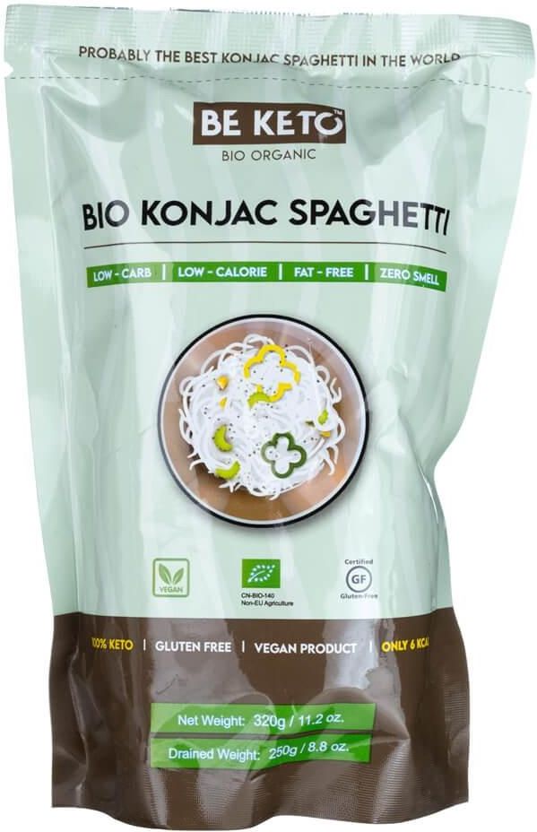 W 100g jedynie 6 kalorii Gotowy w kilka minut Całkowicie bezzapachowy Idealny do sałatek, zup czy keto bowli Łatwy i szybki w przygotowaniu Bio Konjac Spaghetti Bio Konjac Spaghetti to najlepszy niskowęglowodanowy i niskokaloryczny makaron na rynku! Dzięki temu możesz w pełni skupić się na swoich ulubionych dodatkach. Został stworzony z najwyższej jakości organicznych składników. Możesz go na stałe włączyć do swojej diety keto czy low-carb, dalej pozostając w stanie ketozy. Traktuj go zupełnie tak samo, jak klasyczne noodle. Stwórz z nim niesamowite danie w 15 minut! Dlaczego makaron Konjac Spaghetti jest tak cenny? Dietetyczka z Poradni Nutri-Med we Wrocławiu tłumaczy, że bulwy rośliny konjac są bogate w szereg witamin, minerałów, w tym potas, żelazo i wapń i dlatego jest zalecany w dietach szczególnie redukcyjnych. Makaron konjac jest bardzo niskokaloryczny, co czyni go atrakcyjnym wyborem dla osób na diecie lub dbających o swój bilans energetyczny. Zalety produktu: Niskokaloryczny: jedynie 6 kalorii na porcję w 100 gramach. Łatwy i szybki w przygotowaniu: wystarczy Ci mniej niż 5 minut Niskowęglowodanowy: idealny dla osób na diecie keto czy low-carb Bezzapachowy: główną rolę smakową odgrywać będą Twoje ulubione dodatki. Najlepszy na diecie keto, a także low-carb: doskonale zastąpi klasyczny makaron Wegański: świetny dla osób na diecie wegańskiej czy wegetariańskiej Sposób używania:Odsącz wodę i zanurz we wrzątku na 2-3 minuty. Połącz z ulubionymi dodatkami. Pysznym sosem i niskowęglowodanowymi warzywami. Ciesz się pysznym, niskowęglowodanowym i niskokalorycznym daniem! Składniki:Woda, organiczny proszek konjac, kwas cytrynowy.
