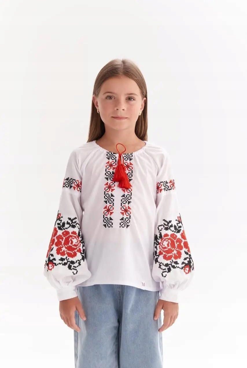 Bluzka haftowana wyszywanka dziewczęca czerwone róże Ukraina 140 Pajęczno