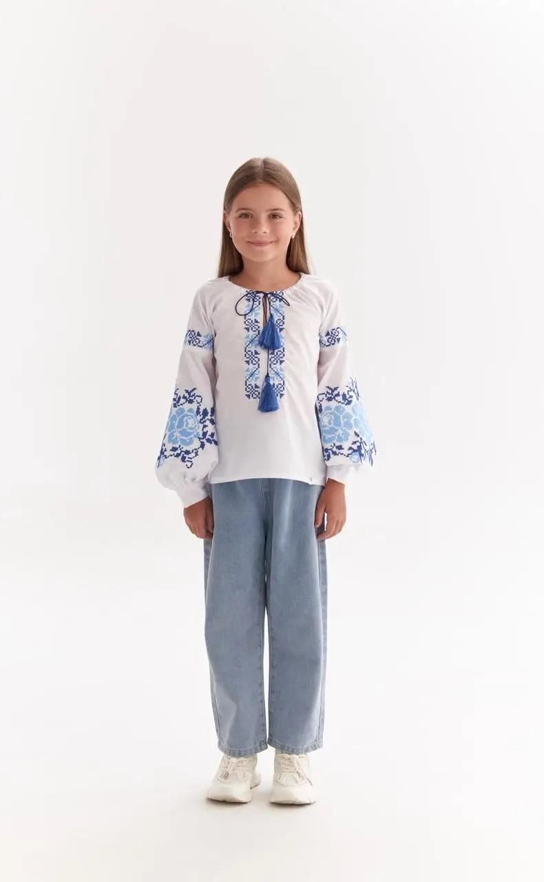 Bluzka haftowana wyszywanka dziewczęca niebieskie róże Ukraina 122 Pajęczno