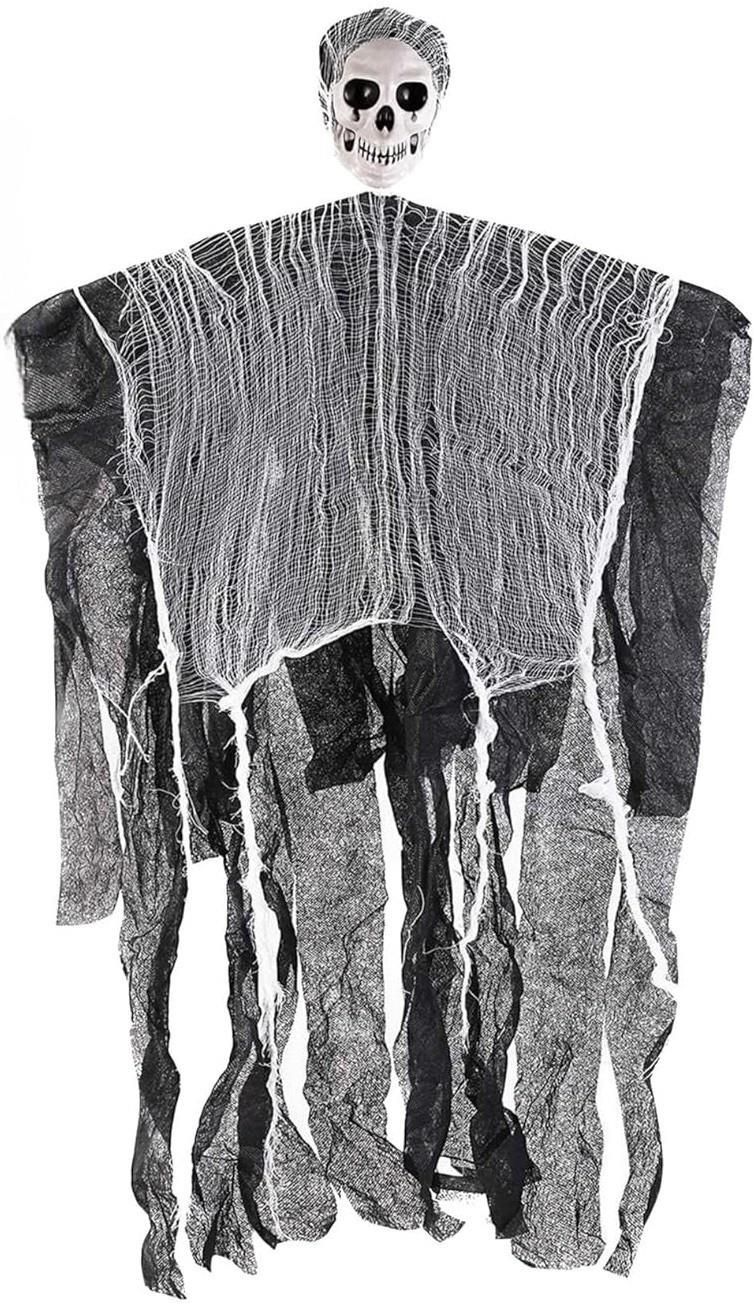 Wiszący kościotrup z pajęczyna na Halloween Zestaw dekoracyjny Halloween - wiszącego kościotrupa można zawiesić drzwiach, balkonie, oknie, dachu lub podwórku, aby stworzyć przerażającą atmosferę. Białe pajęczyny wyglądają jak prawdziwe i sprawiają, że Twój dom wygląda jak opuszczona chata, salon …