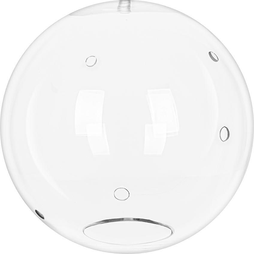 Klosz transparentny 30 cm 5 otworów ( CAPRI 6 ). Okrągły klosz wykonany ze szkła o średnicy 30 cm z pięcioma bocznymi otworami o średnicy 1,4 cm. Na dole klosza znajduje się otwór dekoracyjny o średnicy 10 cm. Pasuje do modelu lamp wiszących Capri. Klosz: śr. 30 cm Otwór montażowy: 1 cm Otwór dekoracyjny: 10 cm Otwory boczne: 5 x 1,4 cm.