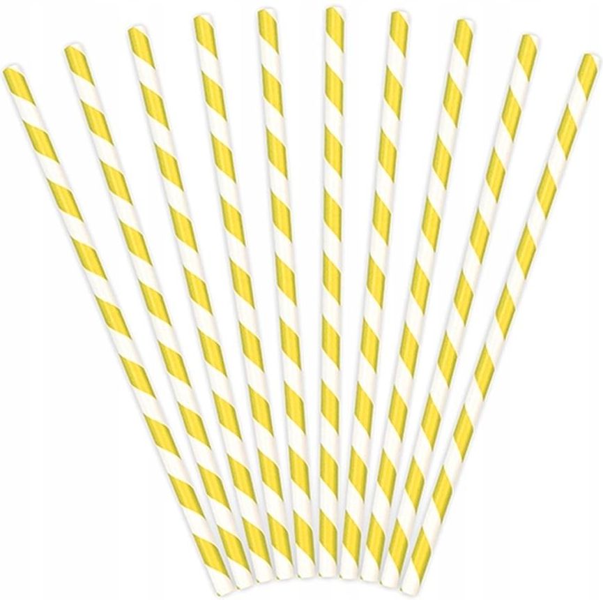 Party Deco Słomki Papierowe Żółte W Paski 10szt. Idealne Na Przyjęcia Pajęczno