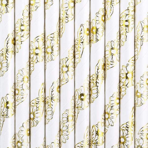 Słomki złote stokrotki, papierowe/10szt.