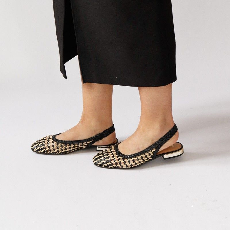 Plecione baleriny skórzane GIOSEPPO 79105 czarne – lekkość i rzemieślniczy styl premium Baleriny GIOSEPPO 79105 to wyjątkowy model, który przyciąga uwagę ręcznie wykonanym, dwukolorowym oplotem oraz lekką, elastyczną konstrukcją. Połączenie klasycznej czerni z naturalnym odcieniem skóry tworzy efektowny, a jednocześnie ponadczasowy design. Kwadratowy nosek nadaje im nowoczesnego charakteru, a subtelny, metaliczny akcent przy podeszwie podkreśla elegancki styl. To idealny wybór dla kobiet, które cenią komfort i unikalne detale. Ręcznie pleciona skóra i unikalny charakter Cholewka została wykonana z przeplatanej skóry, co zapewnia nie tylko wyjątkowy wygląd, ale także doskonałą przewiewność. Każda para może delikatnie różnić się wykończeniem, co podkreśla jej rzemieślniczy charakter i autentyczność. Ręcznie pleciona skóra naturalna → unikalny wygląd i przewiewność. Dwukolorowy oplot → modny kontrast i łatwe dopasowanie do stylizacji. Kwadratowy nosek → nowoczesny fason i większy komfort dla palców. Metaliczny detal przy podeszwie → elegancki, subtelny akcent. Elastyczna konstrukcja → naturalna praca stopy i wygoda przez cały dzień. Komfort i funkcjonalność na co dzień Model został wyposażony w miękką, wyściełaną wkładkę, która zwiększa komfort użytkowania nawet podczas wielogodzinnego noszenia. Elastyczna podeszwa dopasowuje się do ruchu stopy, a lekka konstrukcja sprawia, że buty są niemal niewyczuwalne na nodze. Dodatkowym atutem jest składany tył, dzięki któremu baleriny można nosić także jako wygodne klapki typu mule. Idealne baleriny na sezon wiosna–lato Baleriny GIOSEPPO 79105 doskonale sprawdzą się w codziennych stylizacjach – zarówno z sukienkami, jak i jeansami czy lnianymi zestawami. Ich lekkość i przewiewna konstrukcja czynią je idealnym wyborem na cieplejsze dni, a eleganckie wykończenie pozwala wykorzystać je także w bardziej dopracowanych outfitach. To model dla kobiet, które szukają połączenia komfortu, jakości i oryginalnego designu w letnim wydaniu.
