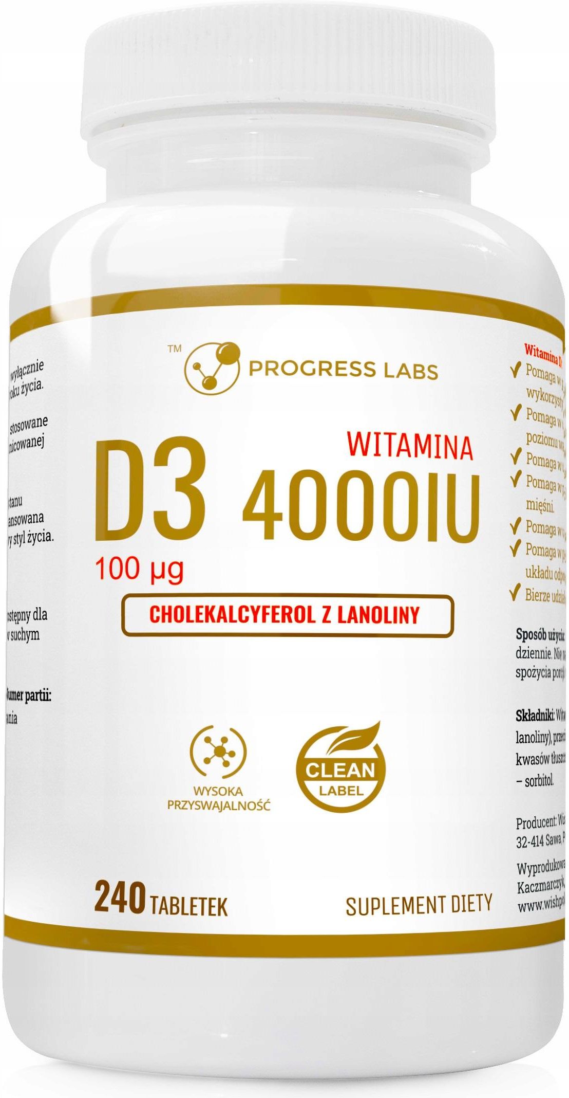 Opinie Progress Labs Witamina D3 4000 Iu Forte 240Tabl. Pajęczno