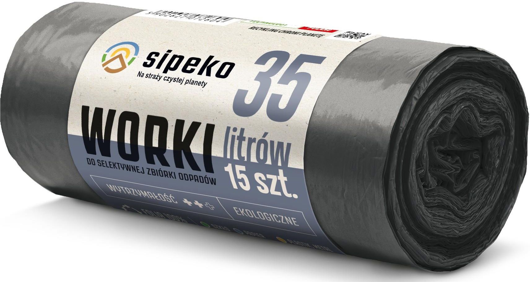 Sipeko LDPE Worki Na Śmieci 35L 15szt. Czarne Pajęczno