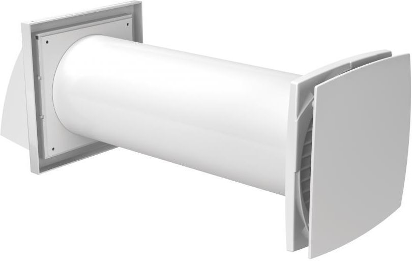 Urządzenie wentylacyjne do pojedynczych pomieszczeń Ventika SoloPlus z wymiennikiem ceramicznym wersja V.2 z czujnikiem wilgotności i pilotem. Zastosowanie efektywna, energooszczędna stała wentylacja pojedynczych pomieszczeń, przy jednoczesnej minimalizacji strat ciepła, filtracja powietrza napływającego, wspomaganie utrzymania właściwej wilgotności powietrza, do montażu bezpośrednio w ścianie zewnętrznej. Dane techniczne Średnica otworu: Ø 100 Wydajność [m3/h]: I bieg: 30(8), II bieg: 46(13) Moc (W): I bieg: 1,5, II bieg: 2,3 Głośność [db(A)/3 m]: I bieg: 27, II bieg: 32 Waga [kg]: 4 Napięcie [V]: 230 Kolor: biały Konstrukcja 1 - FILTR - Oczyszcza powietrze przepływające przez wentylator z kurzu i ciał obcych i zapobiega zanieczyszczaniu wymiennika ciepła. 2 - KANAŁ WENTYLACYJNY 3 - CERAMICZNY WYMIENNIK CIEPŁA - Zaawansowany technologicznie wymiennik ceramiczny o sprawności odzysku ciepła do 88%. 4 - OKAP ZEWNĘTRZNY - Zapobiega przedostawaniu się wody i ciał obcych do urządzenia. 5 - WENTYLATOR REWERSYJNY - Tworzy przepływ powietrza dzięki obrotom wentylatora. Wyposażony w dekoracyjny panel przedni. 6 - CZUJNIK WILGOTNOŚCI - Pomaga kontrolować poziom wilgotności powietrza w pomieszczeniu. 7 - WTYCZKA ZASILANIA - Ułatwia samodzielne podłączenie urządzenia. Sterowanie Pilot zdalnego sterowania: tryb pracy (wybór biegu I i II, włączenie czujnika wilgotności, tryb nocny) Czujnik wilgotności: przy pomocy załączonego plastikowego wkrętaka należy ustawić na potencjometrze wymagany poziom wilgotności w przedziale 60-90%. Jeżeli wilgotność w pomieszczeniu przewyższy ustawioną wartość, urządzenie automatycznie włącza się i pracuje do czasu, kiedy wilgotność wróci do normy. Zasada działania Urządzenie pracuje w dwóch 60 sekundowych cyklach: I cykl Ciepłe, zużyte powietrze usuwane z pomieszczenia przepływa przez wymiennik ciepła, przekazując ciepło i wilgoć. Po 60 sekundach nagrzewania wymiennika ciepła, jednostka wentylacyjna przełącza się w tryb nawiewu. II cykl Świeże, chłodne powietrze z zewnątrz przepływa przez wymiennik ciepła. Powietrze jest nawilżane i ogrzewane przez ciepło zgromadzone wcześniej w wymienniku. Po 60 sekundach, wentylator przełącza się ponownie w tryb wywiewny i cykl się powtarza. Certyfikat: CE Stopień ochroni: IP24