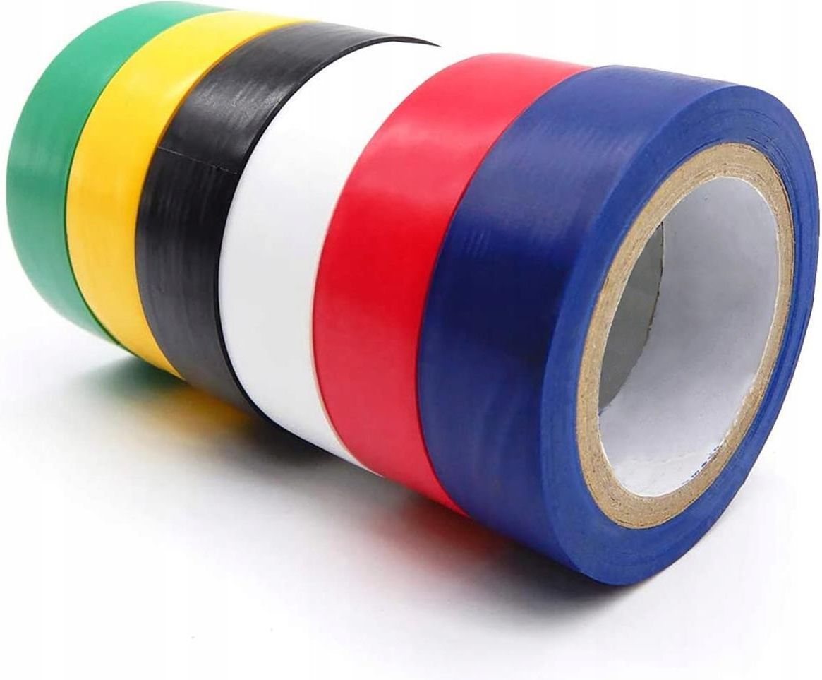 ZESTAW 6 TAŚM IZOLACYJNYCH - 3M kod produktu: V07510 Specyfikacja produktu Grubość taśmy: 0,13 mm, Szerokość taśmy: 19 mm, Długość taśmy: 3 metry, Temperatura stosowania: do + 80°c, Zestaw zawiera 6 szt. Taśmy pvc. TAŚMA IZOLACYJNA MA ZASTOSOWANIE W PRACACH ELEKTROINSTALACYJNYCH (w budownictwie czy też w w motoryzacji). Niezbędna przy konserwacji instalacji elektrycznych, czy też przy oznaczaniu przewodów kolorem - tworzenie wiązek kablowych. KOLORY W ZESTAWIE Czerwony Żółty Niebieski Biały Czarny Zielony ZASTOSOWANIE Izolacja, Wiązkowanie przewodów, Naprawa izolacji i inne.