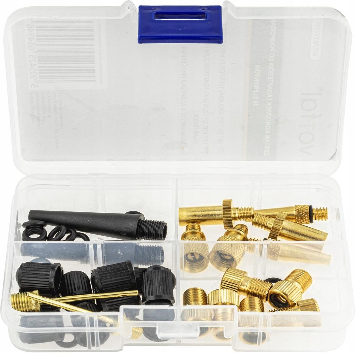 ZESTAW ADAPTERÓW KOŃCÓWEK DO POMPKI POMPOWANIA ROWERU KÓŁ OPON ZAWORY 36 EL Zestaw adapterów do pompowania jest doskonałym narzędziem, które powinno znaleźć się w każdym warsztacie czy też garażu. Jest to uniwersalny komplet, który składa się z 36 elementów, co pozwala na dopasowanie go do każdej potrzeby. W zestawie znajdują się różnego rodzaju końcówki do pompowania, które umożliwiają pompowanie różnych rodzajów przedmiotów. Bez względu na to, czy potrzebujesz pompować piłki, materace, czy też koła rowerowe, zestaw ten z pewnością Ci to umożliwi. Zalety zestawu Kompletny zestaw akcesoriów. Poręczne etui do przechowywania. Bogaty zestaw umożliwiający napompowanie wielu różnych rzeczy. Stworzony z wysokiej jakości materiałów. Idealne uzupełnienie do zestawu z pompką ręczną. Pomocny zestaw podczas wielu kryzysowych sytuacji. Obowiązkowe wyposażenie każdego rowerzysty. Bardzo niska waga zestawu. W skład zestawu wchodzi Zapasowe uszczelki Nakrętki na zawory Końcówki do art. dmuchanych Adapter do wentyli SV Adapter do wentyli AV Adapter do wentyli DV Igła do pompowania Dysza do pompowania Przeźroczyste etui do przechowywania
