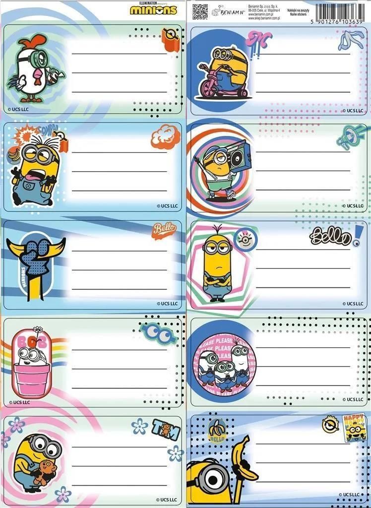 Beniamin Naklejki Na Zeszyty Minionki Pakość