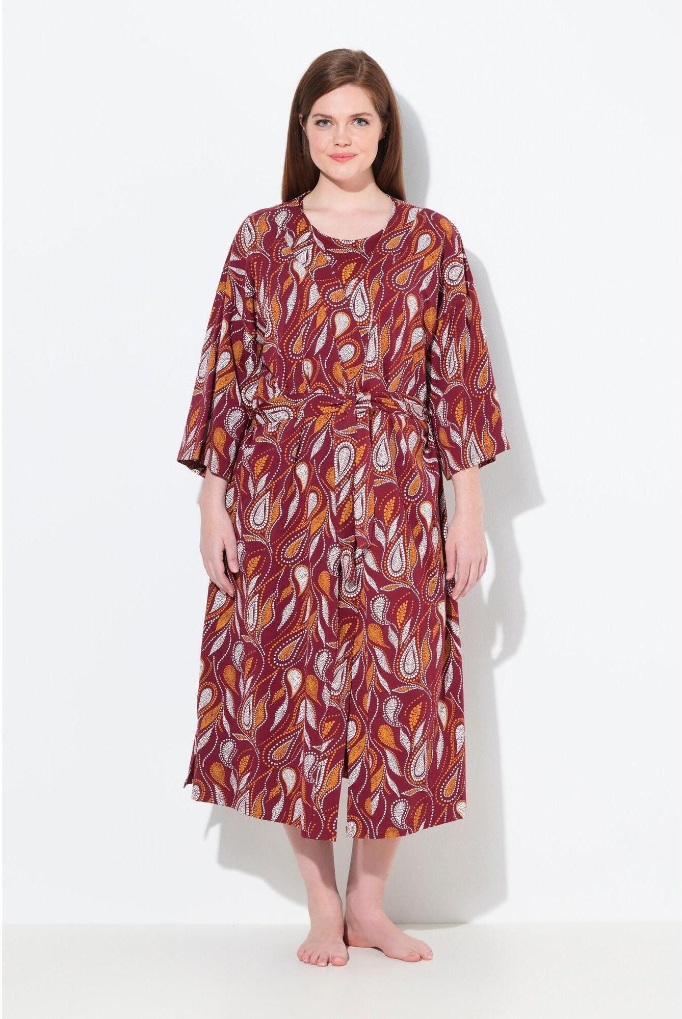 Damskie Szlafrok wzór paisley forma kimona rękaw 3/4 bawełna organiczna Pakość
