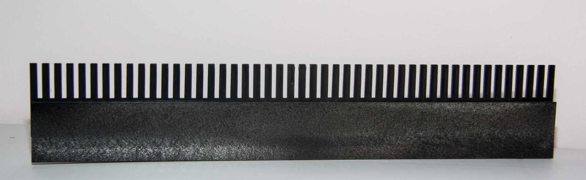 Grzebień służy do zabezpieczenia krawędzi przelewowej komina w akwarium. Woda w łatwy sposób przepływa przez grzebień, a drobne zanieczyszczenia przepływają do filtra. Zwierzęta pozostają bezpieczne w akwarium. Na tej aukcji oferujemy grzebień o długości 50 cm z kieszenią. Kieszeń należy wkleić na krawędź komina przelewowego. Do kieszeni wkładamy grzebień. Opcjonalnie, sam grzebień można założyć na krawędź komina (bez kieszeni) dzięki zintegrowanym 3 klipsom. Samo mocowanie bez kieszeni jest możliwe przy grubości szkła komina od 6 do 8mm. Grzebień i kieszeń można w łatwy sposób dociąć do określonej długości brzeszczotem. Długość: okolo 50 cm Wysokość z kieszenią: około 8 cm Wysokość bez kieszeni: okolo 5.5 cm Długość zębów: około 3.7 cm