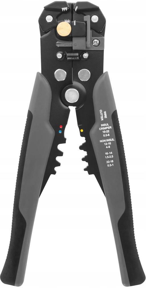 ŚCIĄGACZ IZOLACJI AUTOMAT SZCZYPCE ZACISKARKA 5w1 Automatyczny ściągacz izolacji 0,5-6,0mm² Uniwersalny ściągacz do zdejmowania izolacji z przewodów jednożyłowych lub poszczególnych żył przewodów wielożyłowych. Idealny do ściągania izolacji z kabli solarnych o przekroju 2,5 / 4 / 6 mm². Posiada możliwość zaciskania końcówek konektorowych izolowanych i nieizolowanych. Może być stosowany jako szczypce zaciskowe Specyfkaja Długość: 205 mm Mechanizm: automatyczny, czołowy Możliwość ściągania izolacji z kabli o średnicy: 0,5 - 6 mm² (24-10 AWG) Możliwość zaciskania końcówek konektorowych izolowanych i nieizolowanych 1,5 - 6 mm (22-10 AWG) Posiada regulację dzięki której można dostosować do średnicy przewodu z którego będzie ściągana izolacja Nie uszkadza żyły przewodu Narzędzie poręczne, znacznie ułatwiające i przyśpieszające pracę Dodatkowo - przecinak do kabli Produkt fabryznie nowy