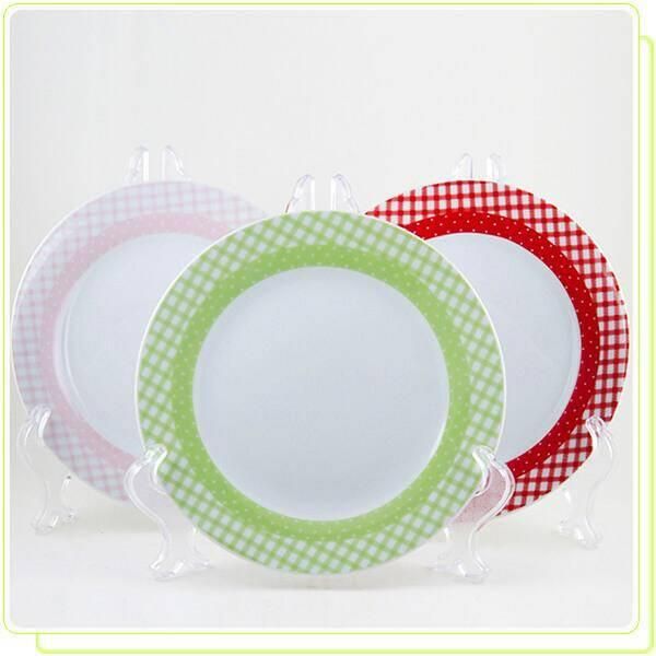 MR-10009-01 Talerz 18,35 cm (pink) • komplet talerzy z porcelitu • średnica talerza: Ø 18,35 cm • wzór kratka • pakowane w ozdobny kartonik po 6 szt.