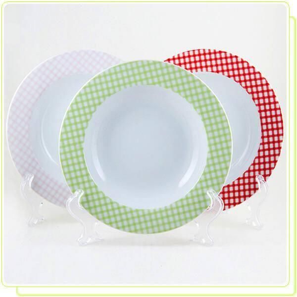 MR-10009-03 Talerz głęboki 21,25 cm (red) • komplet talerzy głębokich z porcelitu • średnica talerza: Ø 21,25 cm • wzór kratka • pakowane w ozdobny kartonik po 6 szt.