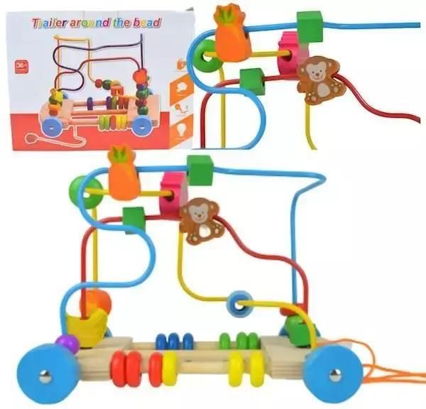 Doskonała drewniana zabawka edukacyjna łącząca zabawę z nauką - trailer z kolorowym labiryntem z koralikami, który rozwija umiejętności motoryczne i koordynację wzrokowo-ruchową dzieci.Opis produktu:Ta wyjątkowa zabawka to połączenie tradycyjnego wózka do ciągnięcia z fascynującym labiryntem z …