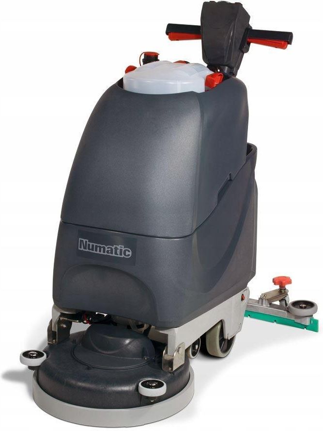 Numatic Tgb3045 Numatic Tgb3045 to innowacyjna i prosta w obsłudze szorowarka, która doskonale sprawdzi się w różnych środowiskach, wymagających regularnego utrzymania czystości. Dzięki swoim ergonomicznym rozwiązaniom oraz wysokiej wydajności, urządzenie to jest idealnym wyborem zarówno dla małych, jak i średnich powierzchni. Wyposażona w baterie żelowe, oferuje czas pracy wynoszący 2 godziny, co pozwala na efektywne sprzątanie bez przerw. Wydajność i zastosowanie Urządzenie Numatic Tgb3045 charakteryzuje się wydajnością teoretyczną wynoszącą 1400 m2/h, co pozwala na szybkie i skuteczne czyszczenie dużych powierzchni. Zastosowanie szorowarki jest wszechstronne, od hal przemysłowych i sportowych, przez hotele i szpitale, aż po urzędy i stacje benzynowe. Dzięki jednoczesnemu myciu i osuszaniu powierzchni, posadzki są natychmiast gotowe do użytku, co jest niezwykle istotne w miejscach o dużym natężeniu ruchu. Solidna konstrukcja i wygoda użytkowania Szorowarka Numatic Tgb3045 została zaprojektowana z myślą o długotrwałym użytkowaniu. Wyposażona w ramę nośną z tworzywa Structufoam®, jest odporna na chemikalia i korozję. Urządzenie posiada regulowany uchwyt, który umożliwia operatorowi przyjęcie ergonomicznej pozycji podczas pracy. Komfort użytkowania zwiększa łatwy system napełniania i opróżniania maszyny oraz zdejmowany zbiornik brudnej wody. Moc i charakterystyka techniczna Szorowarka wyposażona jest w silnik szczotki o mocy 300 W oraz silnik ssawy o mocy 400 W, co zapewnia skuteczne czyszczenie nawet najbardziej zabrudzonych powierzchni. Zasilanie urządzenia odbywa się za pomocą baterii żelowych o pojemności 55 Ah, które gwarantują czas pracy wynoszący do 2 godzin. Dzięki obrotom szczotki wynoszącym 100 obr./min., szorowarka efektywnie usuwa brud i zanieczyszczenia. Kompaktowe wymiary i lekkość Jednym z atutów urządzenia są jego kompaktowe wymiary (47 x 89 x 110 cm) oraz stosunkowo niska waga (90 kg). Dzięki temu szorowarka jest łatwa do przenoszenia i przechowywania, a także manewrowania w trudno dostępnych miejscach. Pojemność zbiorników na czystą i brudną wodę wynosi po 30 litrów każdy, co pozwala na dłuższe korzystanie z urządzenia bez konieczności częstego opróżniania. Dodatkowe funkcje Numatic Tgb3045 oferuje szereg przydatnych funkcji dodatkowych: cicha praca (70 dB), w pełni regulowany uchwyt, baterie żelowe z czasem ładowania wynoszącym 10 godzin, ręczna regulacja przepływu roztworu roboczego, duże koła odbojowe dla lepszej ochrony gum.