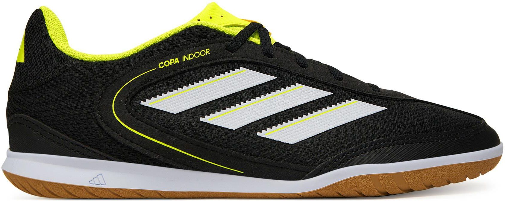 Buty piłkarskie adidas hala halówki Copa Court Club JR2892 Amatorskie buty piłkarskie adidas przeznaczone są dla mężczyzn, którzy preferują rozgrywki na nawierzchniach wewnętrznych. Prezentowane halówki, pochodzące z kolekcji Radiant Blaze Pack stworzono z myślą o zawodnikach, którzy nie boją się podejmować ryzyka, dominując na hali i motywując drużynę do intensywniejszej walki o wygraną. Buty wyposażone w specjalistyczną podeszwę non marking, nie brudzącą i nie pozostawiającą śladów na parkietach hal sportowych. Kolor podeszwy nie ma znaczenia i nie musi być ona biała. Parametry Cholewka wykonana w przeważającej części z materiału tekstylnego o siateczkowej strukturze wspiera naturalną wentylację zapewniając przyjemne uczucie chłodu. Syntetyczne wzmocnienia zwiększają trwałość. Tekstylne wnętrze oraz miękki język z wyściółką podnoszą komfort noszenia Klasyczne sznurowanie przyczynia się do uzyskania anatomicznego dopasowania do stóp. Gumowa, niebrudząca podeszwa zewnętrzna non-marking tworzy stabilną platformę gwarantującą wykonywanie dynamicznych ruchów na parkiecie. Błyszcz na polu gry niczym gwiazda w halówkach z linii Copa. Gumowa podeszwa zewnętrzna non-marking wspiera rytm gry na płaskich nawierzchniach, nie pozostawiając śladów. Pokaż swój styl na halowych boiskach. Te buty piłkarskie adidas Copa Court Club mają lekką cholewkę z siateczki, miękki język z wyściółką i delikatną wyściółkę, które zapewniają chłodzenie i komfort podczas błyskawicznej gry. Szczegóły Standardowe dopasowanie Sznurowane Siateczkowa cholewka Wyściełany język z siateczki Niebrudząca gumowa podeszwa zewnętrzna do gry na powierzchniach halowych