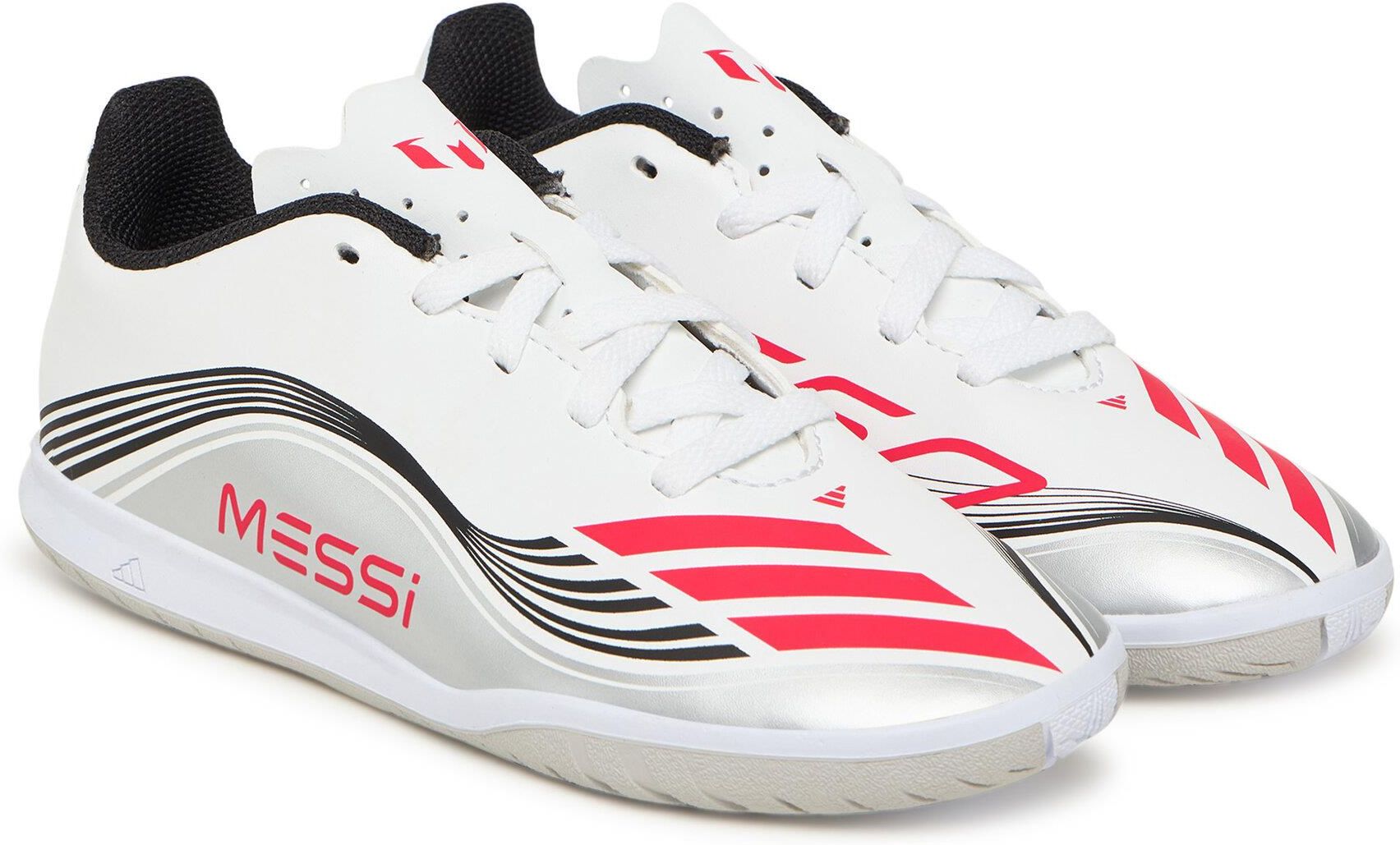 Buty piłkarskie dziecięce adidas hala halówki F50 Club Indoor JP7452 Pozwól swojemu dziecku wejść na poziom gry Lionela Messiego! Halówki dziecięce adidas F50 Messi Club IN to idealny wybór dla młodych piłkarzy, którzy chcą rozwijać swoje umiejętności na hali, pokazując błyskawiczne reakcje, zwroty i drybling rodem z najlepszych występów GOAT-a. Model ten to część wyjątkowej kolekcji zaprojektowanej z myślą o szybkości, precyzji i technice – dokładnie tak, jak gra sam Messi. Buty wyposażone w specjalistyczną podeszwę non marking, nie brudzącą i nie pozostawiającą śladów na parkietach hal sportowych. Kolor podeszwy nie ma znaczenia i nie musi być ona biała. Cechy produktu Model: Adidas JR F50 Messi Club IN Kod produktu: JP7452 Kolor: Cloud White / Lucid Red / Silver Metallic Przeznaczenie: nawierzchnie halowe (indoor) Lekka, syntetyczna cholewka – komfort i wsparcie Miękki, elastyczny język – dopasowanie bez ucisku Tekstylna wyściółka dla lepszego komfortu Niebrudząca gumowa podeszwa – świetna przyczepność na hali Standardowe sznurowanie – stabilne trzymanie stopy Lekka konstrukcja wspierająca szybkość i wygodę Górna część buta została wykonana z lekkiego, syntetycznego materiału, który dobrze dopasowuje się do dziecięcej stopy, jednocześnie redukując wagę buta i zapewniając komfort podczas długich treningów. Elastyczny, miękki język minimalizuje nacisk na podbicie i nie rozprasza w trakcie gry. Wszystko po to, aby dziecko mogło w pełni skupić się na grze i doskonalić każdy element swojej techniki. Przyczepność i kontrola na hali Podeszwa halówek została wykonana z trwałej gumowej mieszanki typu non-marking, która nie zostawia śladów na parkiecie. Oferuje doskonałą przyczepność i stabilność na płaskich nawierzchniach halowych, umożliwiając pewne zmiany kierunku i natychmiastowe przyspieszenia. To obuwie, które doskonale sprawdza się zarówno podczas intensywnych meczów, jak i codziennych treningów na hali. Design inspirowany legendą futbolu Kolorystyka Cloud White / Lucid Red / Silver Metallic przyciąga wzrok i nawiązuje do dynamicznego stylu gry Lionela Messiego. Subtelne detale oraz nowoczesna linia buta sprawiają, że dziecko nie tylko gra jak idol, ale też wygląda jak profesjonalista. Model JP7452 to stylowe halówki, które łączą estetykę z funkcjonalnością.