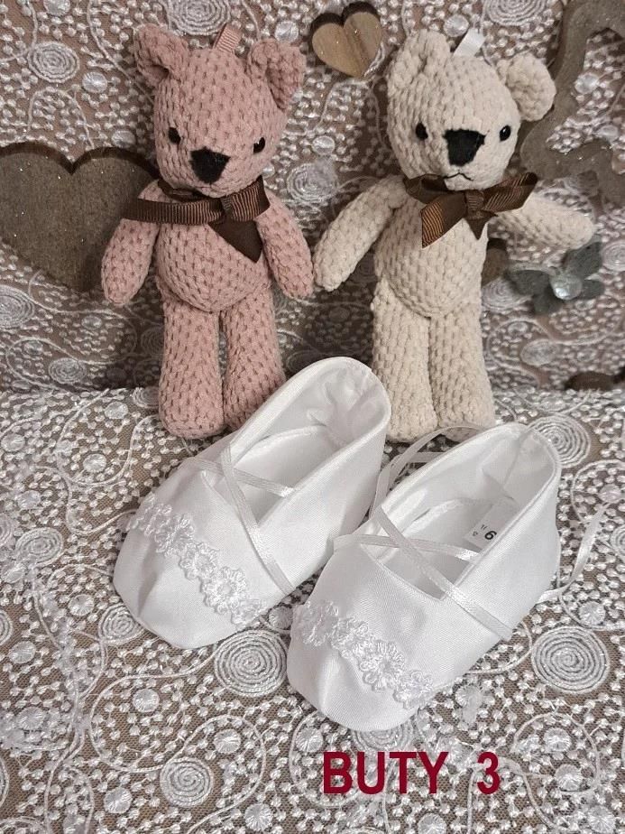BIAŁE BUCIKI DO CHRZTU z kwiecistą koronką Śliczne BIAŁE BUCIKI DO CHRZTU z kwiecistą koronką- MATOWE SANDAŁKI WYKOŃCZONE WZORZYSTĄ KORONKĄ, wiązane na górze wstążeczką. Tkanina poliester 100 %. POLECANE NA LATO DOSTĘPNE W ROZMIARACH rozmiar 56 – 9 cm rozmiar 62 – 10 cm rozmiar 68 – 11 cm rozmiar 74 – 12 cm BUCIKI USZYTE PRZEZ NAS Z NAJLEPSZEJ JAKOŚCI BARDZO MIŁEJ I PRZYJEMNEJ W DOTYKU MATOWEJ TKANINY. DO BUCIKÓW IDEALNIE PASUJE SUKIENKA, OPASKA, KAPELUSZ, TOREBKA, BOLERKO, BLOOMERSY, a także PŁASZCZYK, KTÓRE MOŻNA KUPIĆ ODDZIELNIE. WSZYSTKO WYKONANE Z WIELKĄ STARANNOŚCIĄ I DBAŁOŚCIĄ O SZCZEGÓŁY. PERFEKCYJNIE WYKOŃCZONE. UROKLIWIE I ELEGANCKO Prezentujemy nasz uroczy model bucików na chrzest. Wykonane z matowej tkaniny i ozdobione delikatną koronką z wzorem w motywie kwiatowym są idealnym obuwiem, które podkreśli urok Twojej córeczki lub małej solenizantki w tym ważnym dniu. Nasze modele charakteryzują się minimalistycznym, eleganckim designem, który pasuje do każdej chrzcielnej sukienki – zarówno tych tradycyjnych, jak i nowoczesnych. JAKOŚĆ I WYGODA Buciki wykonaliśmy z wysokiej jakości, miękkiej, bardzo przyjemnej w dotyku tkaniny poliestrowej w klasycznym białym kolorze, które zapewniają komfort nawet podczas długich ceremonii. Idealnie nadają się na specjalne okazje, takie jak chrzest. Dzięki ich lekkiej i przewiewnej konstrukcji, buciki szczególnie polecamy na ciepłe, letnie dni. Dzięki najwyższej jakości tkaniny poliestrowej, buciki są miękkie i przyjemne w dotyku, co sprawia, że są wygodne w noszeniu nawet podczas długiego dnia. Ze względu na swoją przewiewną konstrukcję, są szczególnie polecane na lato, zapewniając komfort i lekkość podczas ciepłych dni. Zobacz inne nasze oferty i sprawdź, który model będzie idealnie pasował Twojej Córce! DOSKONAŁY WYBÓR Nasze buciki śmietankowe do chrztu to doskonały wybór, który zapewni nie tylko piękny wygląd, ale również komfort na cały dzień. Dostępne w rozmiarach od 9 cm do 12 cm (rozmiary 56-74), buciki bez wątpienia zapewnią idealne dopasowanie do stópki maluszka. Ich ponadczasowy, biały kolor świetnie komponuje się z innymi elementami chrzcielnej garderoby, takimi jak sukienka, opaska, kapelusz, torebka, bolerko, bloomersy a także płaszczyk, które można zakupić oddzielnie w naszym sklepie. Możesz również wybrać jeden z zestawionych przez nas gotowych kompletów>>
