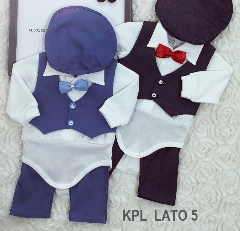 NIEBIESKI KOMPLET DO CHRZTU dla chłopca 5 - CZĘŚCIOWY NIEBIESKI KOMPLET DO CHRZTU. W zestawie znajduje się: KAMIZELKA, SPODNIE I KASZKIET KOLOR NIEBIESKI. Tkanina 100 % poliester. KAMIZELKA ZAPINANA NA DWA GUZICZKI KOSZULO- BODY Z DŁUGIM RĘKAWEM, TKANINA LACOSTA 100 % BAWEŁNY. GÓRA KOSZULKI ZAPINANA NA ZATRZASKI, DÓŁ BODY ZAPINANE NA ZATRZASKI MUSZKA NA SILIKONOWEJ GUMCE KTÓRA NIE UWIERA MALEŃSTWA W SZYJKĘ. BARDZO WYGODNA DO ZAKŁADANIA, IDEALNIE SIĘ ROZCIĄGA A PO CHWILI WRACA DO STANU SPRZED ROZCIĄGNIĘCIA KASZKIET Z DASZKIEM SPODNIE DŁUGIE Z GUMECZKĄ W PASIE ELEGANCKI I WYJĄTKOWY KOMPLET USZYTY PRZEZ NAS Z NAJLEPSZEJ JAKOŚCI BARDZO MIŁEJ I PRZYJEMNEJ W DOTYKU PODOBNEJ DO CIENKIEGO DŻINSU PRZEWIEWNEJ TKANINY. POLECANY NA LATO KOMPLETY DOSTĘPNE w dwóch kolorach, niebieski i granatowy WSZYSTKO WYKONANE Z WIELKĄ STARANNOŚCIĄ I DBAŁOŚCIĄ O SZCZEGÓŁY. PERFEKCYJNIE WYKOŃCZONE. ELEGANCJA I KOMFORT Nasz niebieski komplet do chrztu dla chłopca to z pewnością idealny wybór na ten wyjątkowy dzień. Zestaw składa się z pięciu starannie dobranych elementów, które łączą w sobie elegancję a także komfort. W skład kompletu wchodzą: Kamizelka w kolorze niebieskim, uszyta z wysokiej jakości tkaniny poliestrowej, która jest trwała jednocześnie łatwa w pielęgnacji, zapinana na dwa guziczki, dodaje stylu i elegancji. Długie spodnie z gumką w pasie, uszyte z tej samej tkaniny, zapewniają wygodę, a także doskonałe dopasowanie. Koszulo-body z długim rękawem wykonane z bawełny Lacosta, zapewnia miękkość i wygodę. Zapięcia na zatrzaski na górze i dole ułatwiają szybkie ubieranie a także przewijanie maluszka. Muszka na silikonowej gumce, która idealnie dopasowuje się do szyi dziecka, jednocześnie nie powodując dyskomfortu i dzięki swojej elastyczności łatwo się zakłada. Kaszkiet z daszkiem wykonany z tej samej tkaniny co kamizelka i spodnie, dodaje uroku a dodatkowo chroni przed słońcem.NAJLEPSZY WYBÓR Komplet został uszyty z myślą o letnich uroczystościach, z przewiewnej tkaniny przypominającej cienki dżins, która jest przyjemna w dotyku i bez wątpienia idealna na ciepłe dni. Wybierz między subtelnym niebieskim a klasycznym granatowym, aby idealnie dopasować styl do okazji. Do kompletu możesz dobrać również marynarkę, kurteczkę ibuciki, aby dopełnić komplet lub skomponować własny zestaw i dobierać dodatki w naszym sklepie>> ZOBACZ INNE NASZE KOMPLETY DLA MAŁYCH DŻENTELMENÓW>>