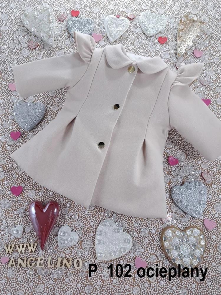 PŁASZCZYK DO CHRZTU dla dziewczynki ocieplany nude (w kolorze cielistym) USZYTY PRZEZ NAS Z NAJLEPSZEJ JAKOŚCI BARDZO MIŁEJ I PRZYJEMNEJ W DOTYKU FLAUSZOWEJ TKANINY PŁASZCZYK DO CHRZTU dla dziewczynki ocieplany nude. POLECANY NA ZIMĘ. PŁASZCZYK ANIOŁEK, OCIEPLANY NA PODSZEWCE Z WDZIĘCZNYM DELIKATNYM KOŁNIERZYKIEM, PRZY RĘKAWKACH UROCZE FALBANKI, ZAPINANY NA OZDOBNE ZŁOTE GUZICZKI. Tkanina poliester 100 %. PŁASZCZYK DOSTĘPNY RÓWNIEŻ W WERSJI CIENKIEJ TYLKO NA PODSZEWCE P 102. DO PŁASZCZYKA IDEALNIE PASUJE SUKIENKA, KAPELUSZ/CZAPECZKA, OPASKA, A TAKŻE TOREBKA I BUCIKI, KTÓRE MOŻNA KUPIĆ ODDZIELNIE.. WSZYSTKO WYKONANE Z WIELKĄ STARANNOŚCIĄ I DBAŁOŚCIĄ O SZCZEGÓŁY. PERFEKCYJNIE WYKOŃCZONE. STYLOWY UROK Płaszczyk do chrztu dla dziewczynki ocieplany nude (w kolorze cielistym) to idealna propozycja na zimowe uroczystości, łącząca elegancję z funkcjonalnością. Doskonale sprawdzi się podczas chrztu oraz innych zimowych okazji jak i w trakcie rodzinnych spacerków, zapewniając wygodę i styl. Płaszczyk nie tylko prezentuje się wyjątkowo uroczo, ale także skutecznie chroni malucha przed zimnem, dzięki ocieplonej podszewce. Uszyty z najwyższej jakości flauszowej tkaniny, zapewnia otulenie komfortowym ciepłem, co jest szczególnie ważne w chłodniejsze dni. Wyróżnia się on urokliwymi detalami, takimi jak falbanka przy rękawku i zakładki na przedzie które dodają mu niepowtarzalnego wdzięku. Subtelny kołnierzyk podkreśla dziewczęcy charakter płaszczyka, a ozdobne złote guziczki sprawiają, że całość wygląda niezwykle elegancko. Zapięcie na guziczki, nie tylko podkreśla jego urodę, ale także ułatwia szybkie zakładanie i zdejmowanie, co jest niezwykle praktyczne przy małych dzieciach. DOSKONAŁY WYBÓR Dostępna jest także cieńsza wersja płaszczyka, idealna na cieplejsze dni, która zapewnia lekkość i komfort noszenia. Dzięki temu można dobrać odpowiedni model na każdą porę roku. Do białego płaszczyka idealnie pasują inne eleganckie dodatki, takie jak sukienka, kapelusz, czapeczka, opaska, torebka czy buciki. Każdy z tych elementów można zakupić oddzielnie w naszym sklepie, tworząc spójny i harmonijny zestaw na ważne uroczystości. Możesz również wybrać jeden z gotowych, skompletowanych przez nas zestawów do chrztu dla dziewczynki>> Każdy płaszczyk jest szyty z najwyższą starannością i dbałością o detale, co zapewnia perfekcyjne wykończenie i wyjątkową jakość. Ten elegancki płaszczyk sprawi, że Twoja córeczka będzie wyglądała uroczo i czuła się komfortowo, niezależnie od pogody.