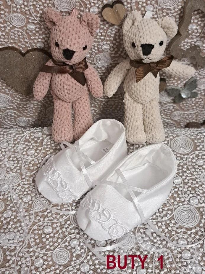 SANDAŁKI DO CHRZTU Z KORONKĄ dla dziewczynki białe Matowe, białe SANDAŁKI Z KORONKĄ do chrztu z koronką dla dziewczynki, ozdobione z wierzchu NOWOCZESNYM DETALEM BIAŁEJ KORONKI wiązane na górze cienką wstążeczką. Tkanina poliester 100 %. POLECANE NA LATO rozmiar 56 – 9 cm rozmiar 62 – 10 cm rozmiar 68 – 11 cm rozmiar 74 – 12 cm BUCIKI USZYTE PRZEZ NAS Z NAJLEPSZEJ JAKOŚCI BARDZO MIŁEJ I PRZYJEMNEJ W DOTYKU MATOWEJ TKANINY. DO BUCIKÓW IDEALNIE PASUJESUKIENKA, OPASKA, KAPELUSZ, TOREBKA, BOLERKO, BLOOMERSY, a także PŁASZCZYK, KTÓRE MOŻNA KUPIĆ ODDZIELNIE. WSZYSTKO WYKONANE Z WIELKĄ STARANNOŚCIĄ I DBAŁOŚCIĄ O SZCZEGÓŁY. PERFEKCYJNIE WYKOŃCZONE. STYLOWY UROK Nasze buciki na chrzest to połączenie klasycznego designu, najwyższej jakości materiałów i dbałości o komfort małych stópek. To idealne obuwie, które podkreśli urok Twojej córeczki lub małej solenizantki w tym ważnym dniu. Nasze modele charakteryzują się minimalistycznym, eleganckim designem, który pasuje do każdej chrzcielnej sukienki – zarówno tych tradycyjnych, jak i nowoczesnych. Delikatny detal śnieżno-białej koronki rozciągnięty wzdłuż bucika nadaje mu wykwintności oraz uroku. WYGLĄD I WYGODA Buciki wykonaliśmy z wysokiej jakości, miękkiej, bardzo przyjemnej w dotyku tkaniny poliestrowej w białym kolorze. Przewiewna tkanina zapewnia komfort nawet podczas długich ceremonii. Idealnie nadają się na specjalne okazje, takie jak chrzest. Dzięki ich lekkiej i przewiewnej konstrukcji, buciki te są polecane szczególnie na ciepłe, letnie dni. Buciki dostępne są w rozmiarach od 9 cm do 12 cm (rozmiary 56-74) a na wierzchu wiązane są cienkimi wstążeczkami, dzięki czemu dopasowanie ich dla delikatnych stópek maluszka jest bardzo łatwe. DOSKONAŁY WYBÓR NA WYJĄTKOWY DZIEŃ Idealnie dopasowane do naszych bucików sukienki, opaski, kapelusze, torebki, bolerka, bloomersy oraz płaszczyki można nabyć oddzielnie w naszym sklepie, aby stworzyć spójną i wyjątkową stylizację na chrzest. Możesz również wybrać jeden z zestawionych przez nas gotowych kompletów>> Nasze buciki do chrztu dla dziewczynki to doskonały wybór, który zapewni nie tylko piękny wygląd, ale również komfort na cały dzień pełen wrażeń. Zobacz inne nasze oferty i sprawdź, który model będzie idealnie pasował Twojej Córce!