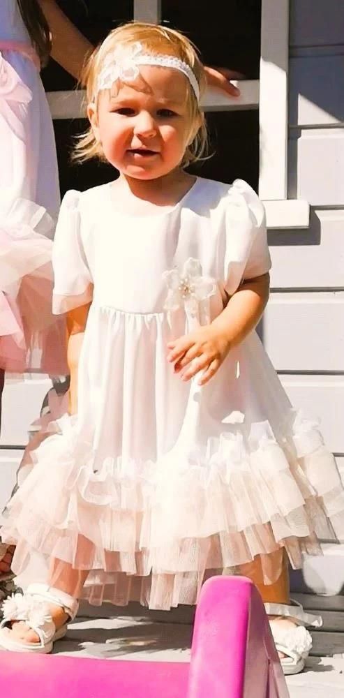 SUKIENECZKA DO CHRZTU dla dziewczynki śmietankowa- jasna ecru CZEKOLADOWE LOVE PIĘKNA SUKIENECZKA DO CHRZTU DLA DZIEWCZYNKI WYKOŃCZONA DELIKATNYM TIULEM PRZY RĘKAWKU, 4 WARSTWY TIULU NA DOLE NA SPÓDNICY w kolorze śmietankowym, szampana, toffi i czekoladowym. GÓRA SUKIENKI NA CIENKIEJ PŁÓCIENNEJ …