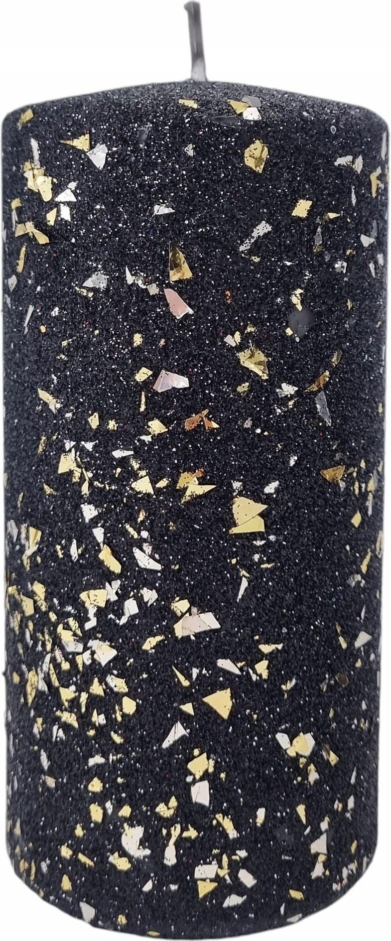 Artman Świeca Ozdobna Glamour 14Cm Czarna Brokatowa Złote Drobinki Walec (5908289469073) Parczew