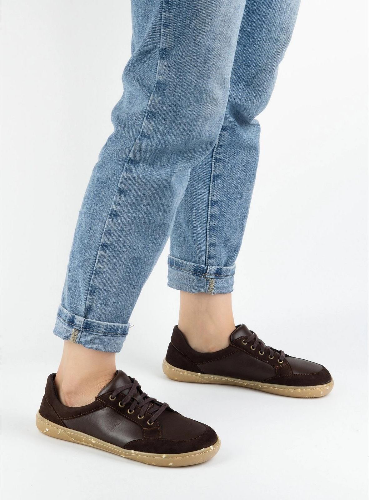 Damskie buty skórzane barefoot 0772W WASAK brązowe minimalistyczne Odkryj nową jakość codziennego chodzenia z modelem barefoot 0772W w odcieniach brązu. To buty stworzone z myślą o kobietach, które cenią swobodę, naturalność i komfort na własnych warunkach. Skórzana cholewka miękko otula stopę, a lekka, płaska podeszwa barefoot pozwala jej pracować tak, jak zaplanowała natura – bez ucisku, bez zbędnego usztywnienia, bez kompromisów. Dzięki szerokiemu przodowi palce mają więcej przestrzeni, co zapobiega ich męczeniu się nawet po całym dniu noszenia. Naturalna skóra w połączeniu z przemyślaną konstrukcją wspiera cyrkulację powietrza, dzięki czemu stopy pozostają świeże przez cały dzień. To polskie obuwie, które pozwala iść przez dzień wygodnie, zdrowo i z klasą – w domu, w pracy, na spacerze. Gatunek: I Kolor: Brązowy Materiał: Skóra naturalna Materiał wewnętrzny: Skóra naturalna Podeszwa: Wysokogatunkowe tworzywo Sposób wykonania: Szyte, Klejone Typ: Casual Tęgość: H waga buta (rozmiar 43): 290 g Zapięcie: Sznurowane Płeć: Damskie Sezonowość: Całoroczne Konserwacja: Pasty do skór licowych, Tłuszcze do konserwacji typu Mink Oil Tabela rozmiarów Rozmiar 36 - Długość wkładki: 23,5 cm, Szerokość: 9,3 cm Rozmiar 37 - Długość wkładki: 24,2 cm, Szerokość: 9,45 cm Rozmiar 38 - Długość wkładki: 24,8 cm, Szerokość: 9,6 cm Rozmiar 39 - Długość wkładki: 25,5 cm, Szerokość: 9,75 cm Rozmiar 40 - Długość wkładki: 26,2 cm, Szerokość: 9,9 cm Rozmiar 41 - Długość wkładki: 26,8 cm, Szerokość: 10,05 cm Rozmiar 42 - Długość wkładki: 27,5 cm, Szerokość: 10,2 cm