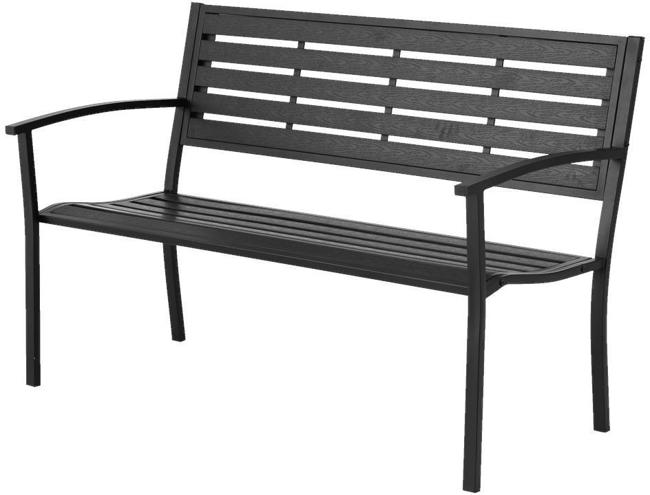 Ekvip Ławka Ławka na taras Niewymagająca konserwacji ławka, na której możesz wypić kawę lub podziwiać widoki. Stelaż został wykonany ze stali lakierowanej proszkowo i ma przemyślany kształt, który zapewnia wygodę siedzenia. Czarne listewki oparcia i siedziska zostały wykonane z drewna polywood, które jest wytrzymałe i odporne na działanie warunków atmosferycznych. Specyfikacja: Wysokość oparcia: 45 cm Wysokość siedziska: 40 cm Głębokość siedziska: 43,5 cm Szerokość siedziska: 121 cm Wymiary: Szer. 127 x wys. 85 x głęb. 65 cm