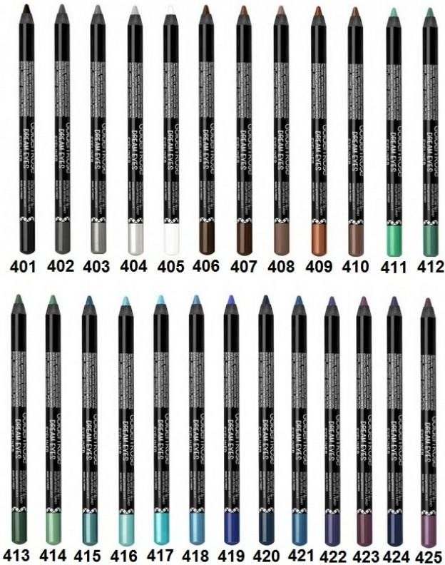 Trwała kredka do oczu DREAM EYES EYELINER od Golden Rose. Wariant - 415 Produkt dzięki swojej bardzo dobrej pigmentacji pozwala na stworzenie niepowtarzalnego makijażu oka. Dzięki lekkiej, kremowej formule łatwo się rozprowadza. Nie rozmazują się i pozostają na powiece przez długie godziny. Seria posiada bogatą kolorystykę. Testowany dermatologicznie. Sposób użycia: W dowolny sposób narysuj kreskę na górnej i/lub dolnej powiece. Seria trwałych kredek do oczu DREAM EYES EYELINER od Golden Rose. Skład produktu: ppg-3 hydrogenated castor oil, ethylhexyl hydroxystearate, cera microcristallina, caprylic/capric, triglyceride, synthetic wax, silica, alumina, synthetic fluorphlogopite, octyldodecanol, pentaerythrityl tetraisostearate, cera alba, copernicia cerifera ce O Firmie: Firma Golden Rose to turecka marka kosmetyczna, a także wyłączny dystrybutor produktów Erkul Cosmetics. Jest to jeden z największych producentów lakierów do paznokci na świecie. Istnieje na Polskim rynku od 2003 roku. Oferta Golden Rose obejmuje kosmetyki kolorowe, lakiery do paznokci oraz akcesoria. Produkty Firmy Golden Rose są uosobieniem doskonałego stosunku jakości do swojej ceny. Jakość, innowacyjność i atrakcyjna cena produktów Golden Rose została doceniona zarówno przez środowisko branżowe, jak i klientki. Oferowane kosmetyki nie są testowane na zwierzętach. Owocem zaufania do tej Firmy jest przyznawanie wielu nagród takich jak: Wielokrotnie przyznawane nagrody Najlepszy Produkt Roku Wybór konsumentów Perły Rynku Kosmetycznego Stylowy Kosmetyk portalu "styl" Kosmetyk Wszechczasów i Hit Wizażanek portalu opiniotwórczego "wizaz" Must Have magazynu Make Up Trendy.