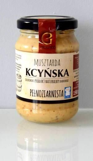 Musztarda Pełnoziarnista to "Królowa" wśród kcyńskich musztard. Wyrazista ale łagodna w smaku, z chrupiącymi, pełnymi ziarnami gorczycy. Najlepiej smakuje jako dressing do sałatek, burgerów czy każdego rodzaju mięs. Skład: woda, ziarna gorczycy białej, ocet winny, cukier, sól, przyprawy korzenne, nasiona gorczycy białej i czarnej. Waga netto: 190g