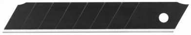 Hoegert HT4C672 Ostrza łamane wymienne 18mm SH2H 10 sztuk powłoka antykorozyjna Najważniejsze cechy najwyższej jakości ostrze o wydłużonej żywotności, zwiększonej odporności na pęknięcia i wykruszenia, wykonane z wysokowęglowej stali sprężynowej SK2H; potrójna krawędź tnąca ostrzona laserowo zapewnia ostrość na najwyższym poziomie; specjalna czarna powłoka anti-rust chroni przed korozją; dzięki segmentowej budowie po stępieniu można odłamać zużyty segment, otrzymując kolejny ostry fragment; pakowane w poręczne plastikowe pudełko; w opakowaniu 10 ostrzy. Opis Komplet 10 ostrzy łamanych 18 mm wykonanych ze specjalnego stopu stali SK2H dedykowanej do nożyków tnących. Szczególnie przydatne do prac wykończeniowych, cięcia kartonów, tapet, wykładzin, tkanin plandekowych, folii drukarskich oraz folii PVC itp.