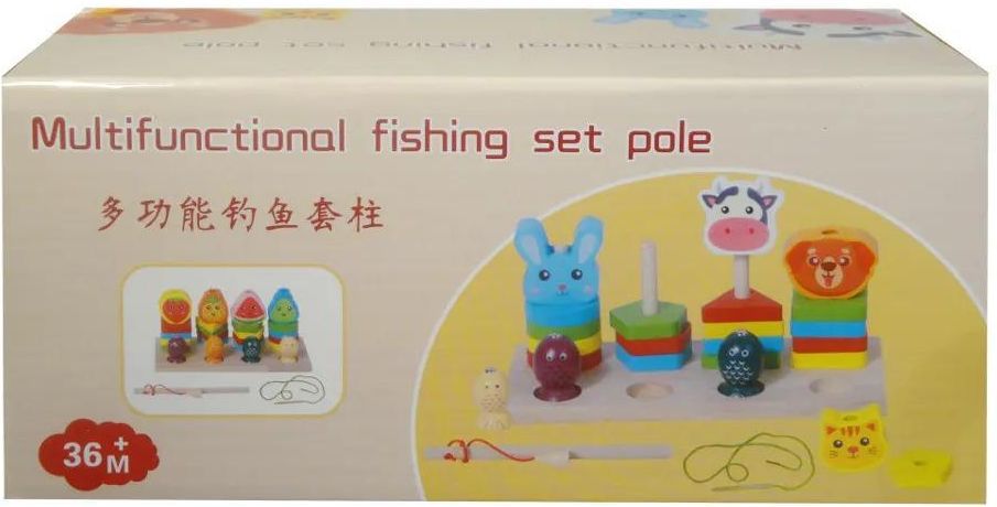 Drewniana zabawka 2 w 1 dla dzieci. Dzięki niej dzieci będą ćwiczyć zręczność, a także poznają kształty i kolory. Zabawka posiada: - grę rybki polegającą na łowieniu rybek za pomocą kijka z magnesem, - grę polegającą na rozróżnianiu kształtów i układaniu piramidek. Produkt dla dzieci od 3 lat. …